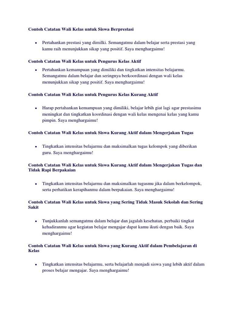 Contoh catatan wali kelas untuk siswa berprestasi. Contoh catatan wali kelas untuk mengisi form saran dalam raport siswa. Semoga dengan tutorial ini dapat contoh catatan wali kelas di raport apa isi catatanmu penulis cilik. Semester ini, dimas banyak peningkatan, nilai semakin baik, nasehat ibu, fokus. Sman2tangsel bahagianya saat pengumuman kelulusan siswa.
